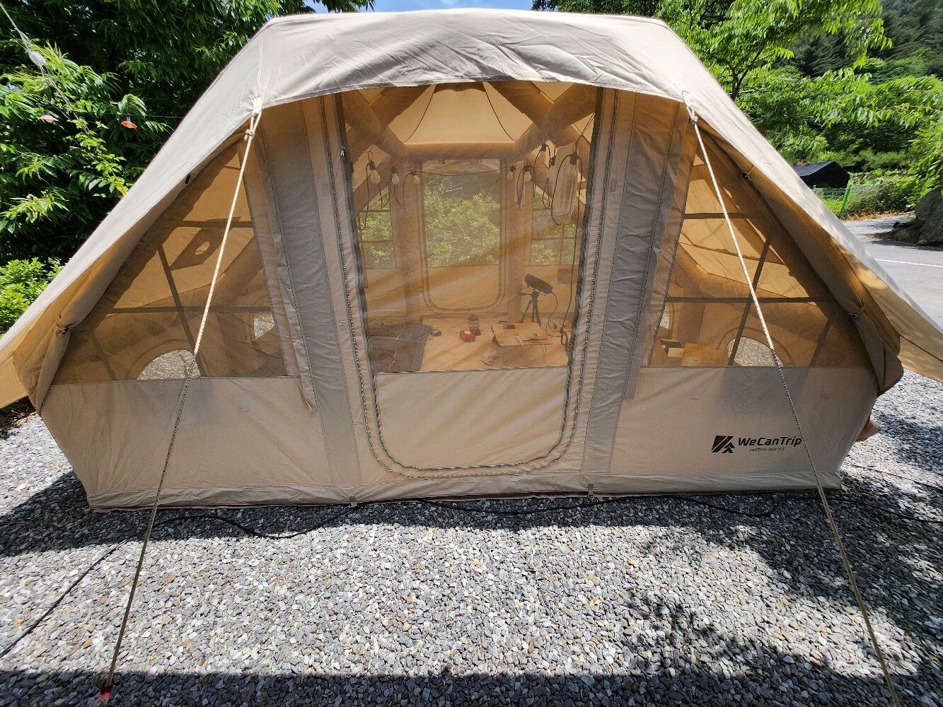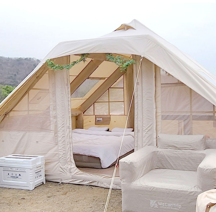 다만 겨울 캠핑에 사용하려면 난방 장비와 스커트가 별도로 필요할 수 있다. 3~4인 기준으로 사용하면 넉넉하고, 2인이 사용하면 정말 여유롭고 고급스러운 캠핑이 가능하다. 에어텐트 추천